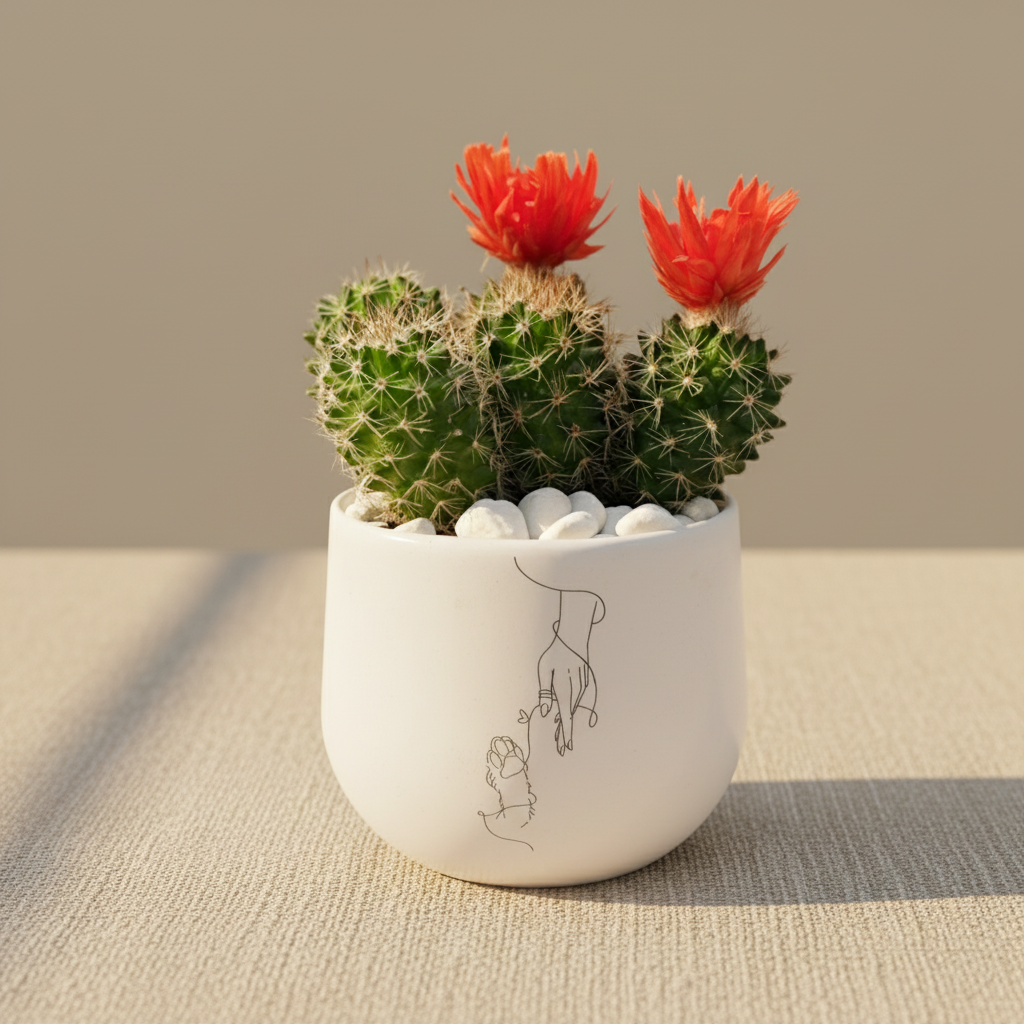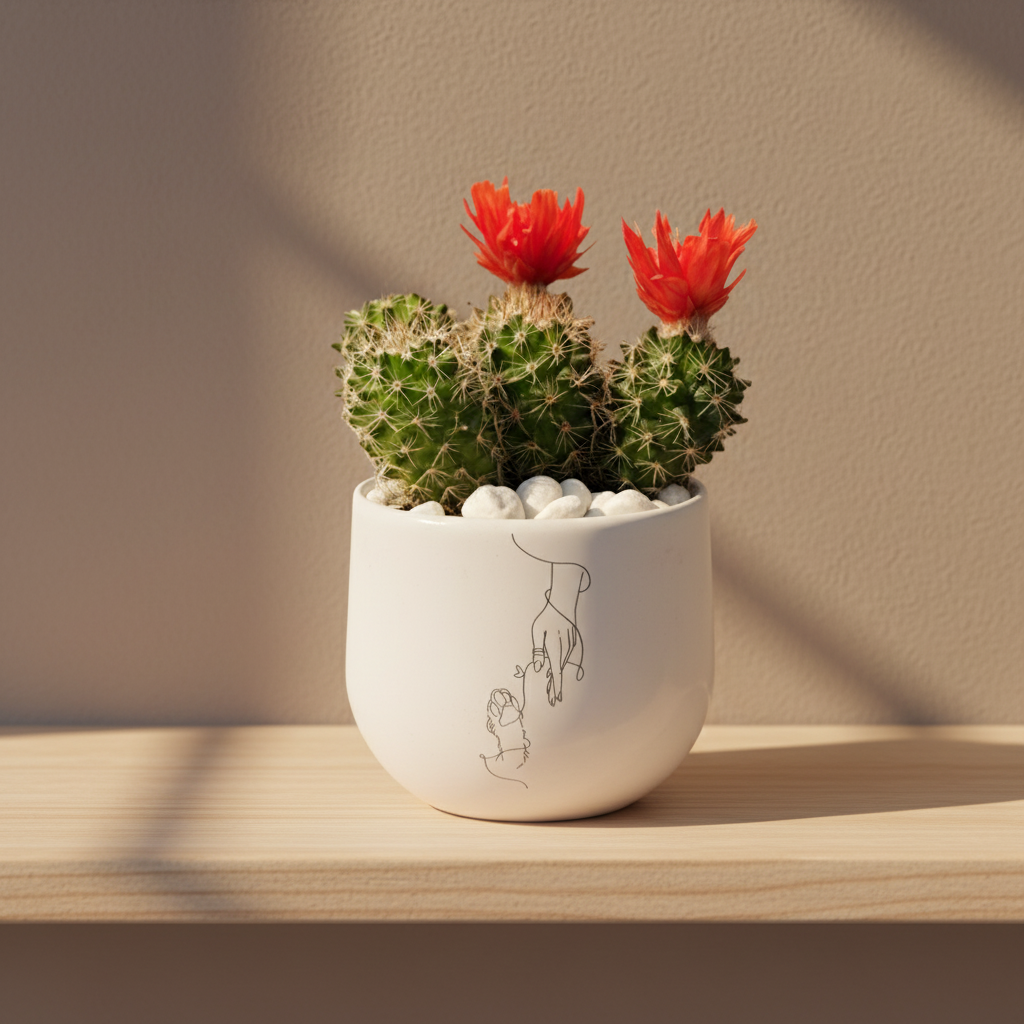 Un pensiero che parla al cuore: un vaso in ceramica artigianale con piantina grassa. Un gesto semplice ma ricco di significato, perfetto per celebrare affetto, gratitudine o un momento speciale.