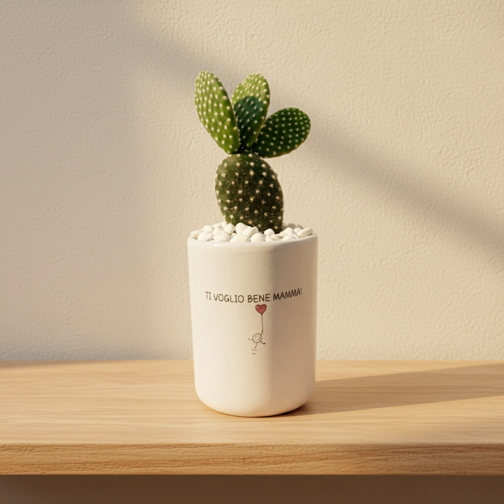 Un vaso in ceramica artigianale con piantina grassa, impreziosito da una frase dedicata che rende ogni dono unico e personale. Un gesto semplice ma ricco di significato, perfetto per celebrare affetto, gratitudine o un momento speciale.
