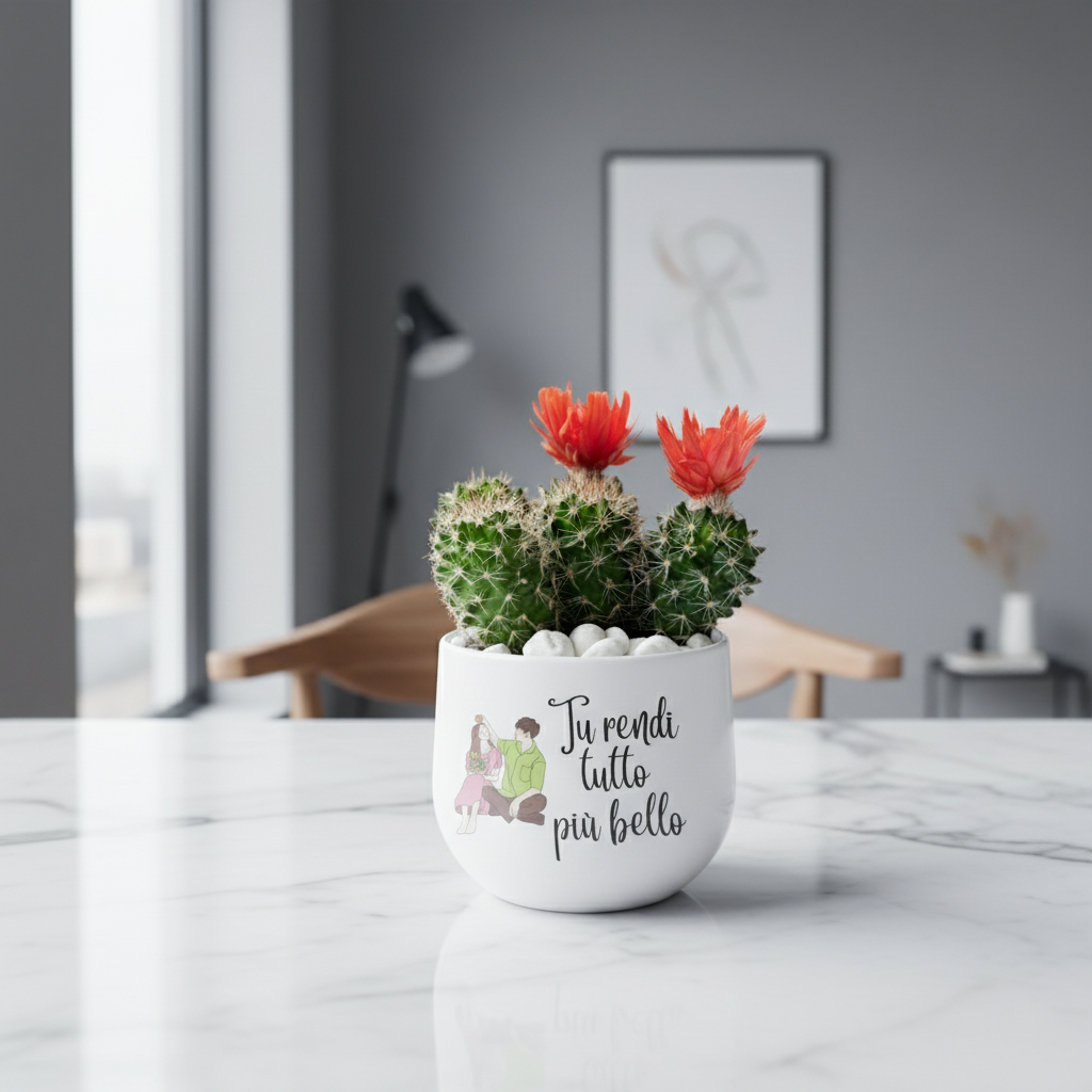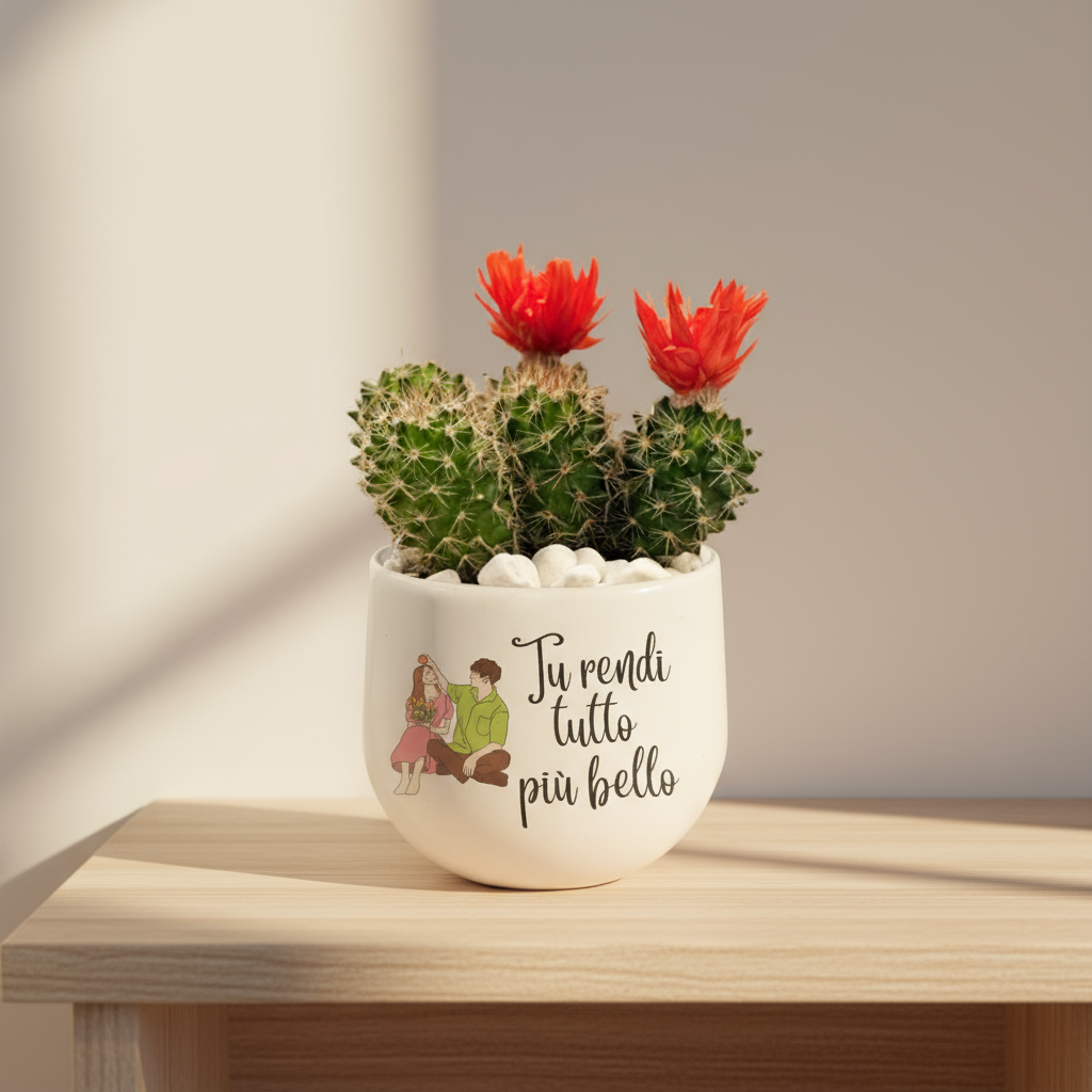 Un pensiero che parla al cuore: un vaso in ceramica artigianale con piantina grassa, impreziosito da una frase dedicata che rende ogni dono unico e personale. Un gesto semplice ma ricco di significato, perfetto per celebrare affetto, gratitudine o un momento speciale.